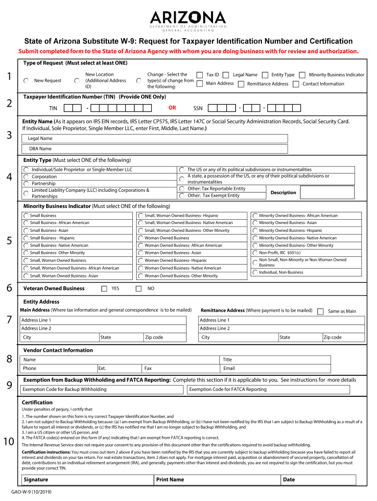 2019 2025 Form AZ GAO W 9 Fill Online Printable Fillable Blank PdfFiller