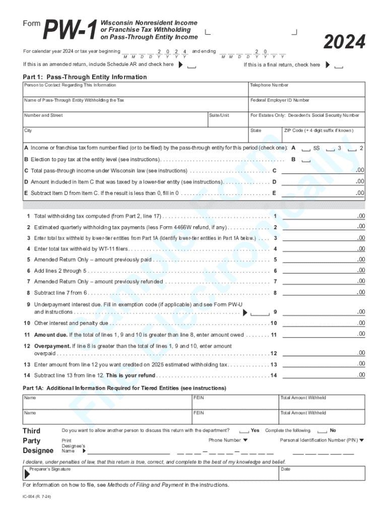 2024 Form WI PW 1 Fill Online Printable Fillable Blank PdfFiller