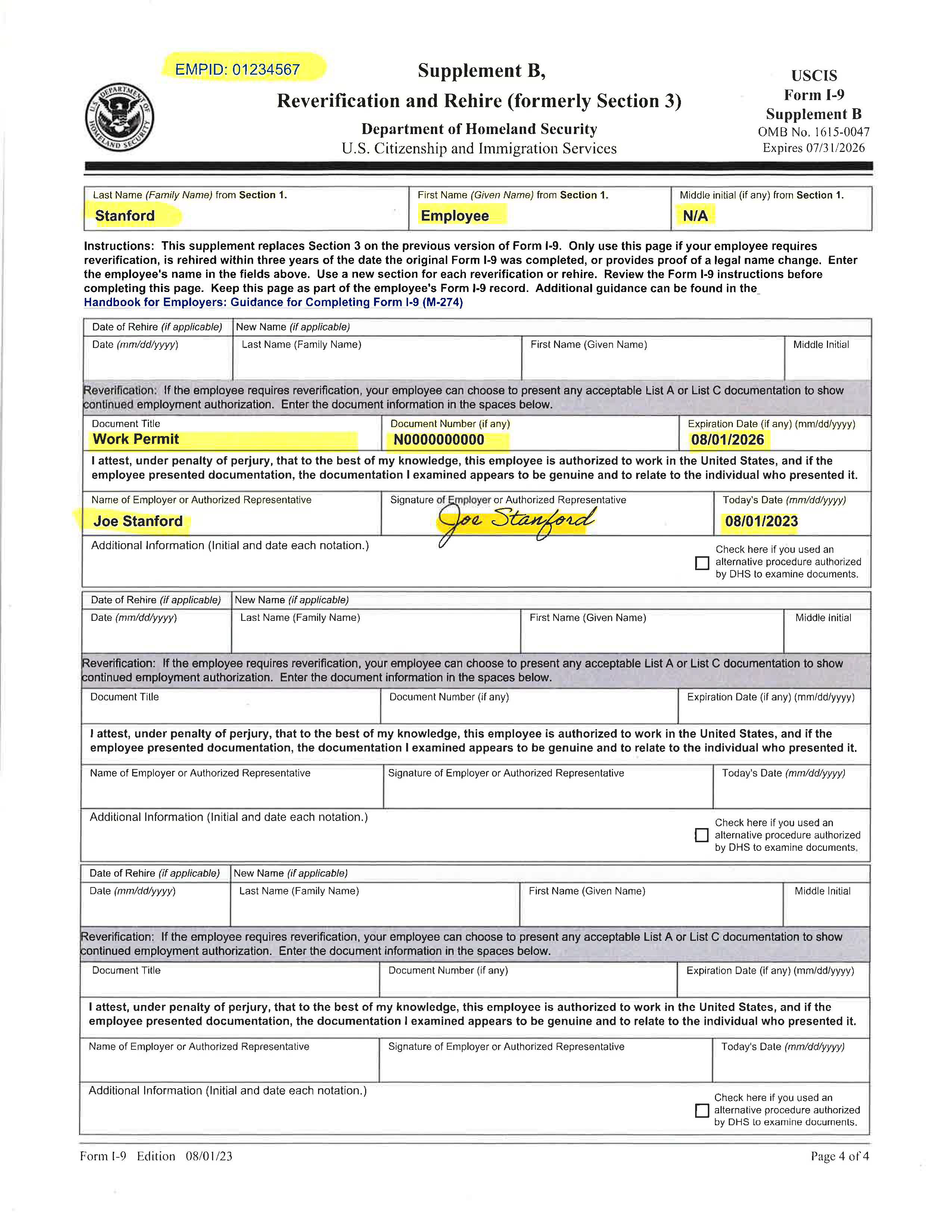 Examples Of Completed Form I 9 For Stanford