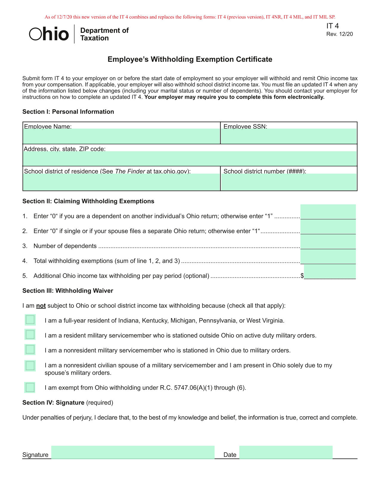 2014 2025 Form OH IT 1040EZ Fill Online Printable Fillable Blank PdfFiller