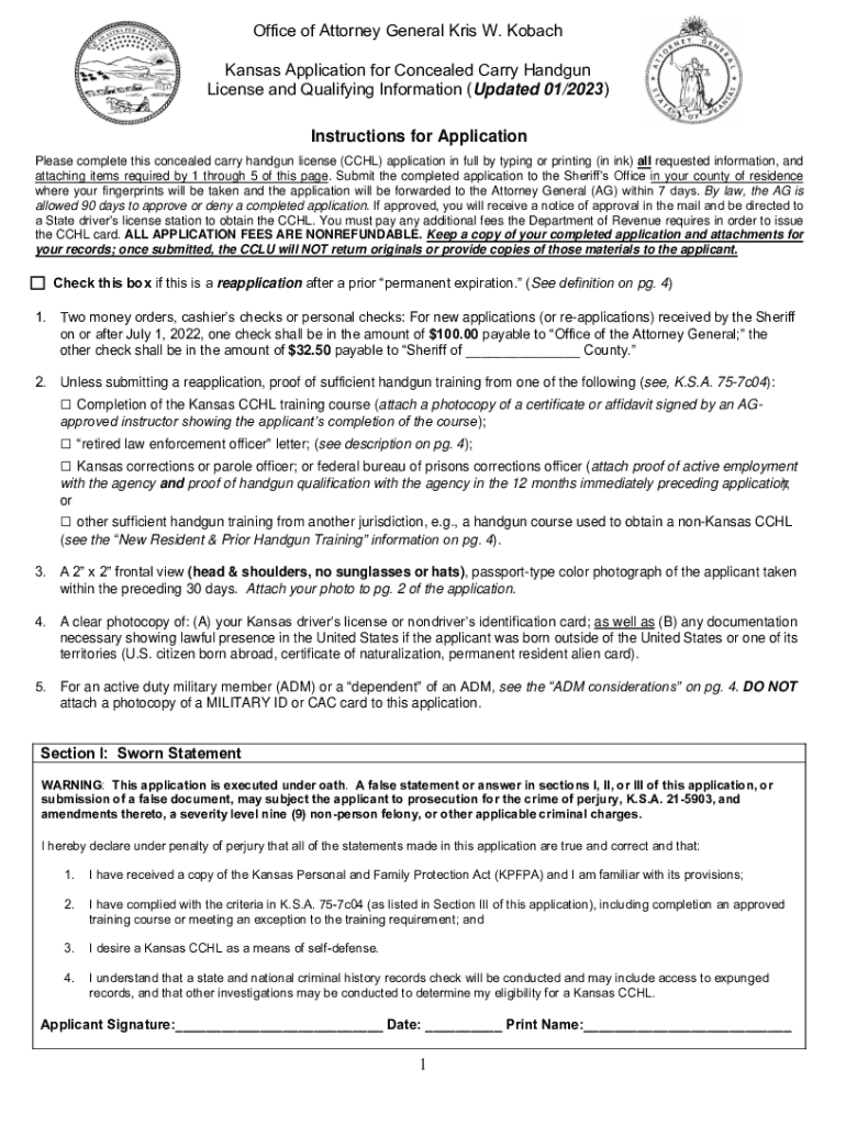 2023 2025 KS Application For Concealed Carry Handgun License And Qualifying Information Fill Online Printable Fillable Blank PdfFiller
