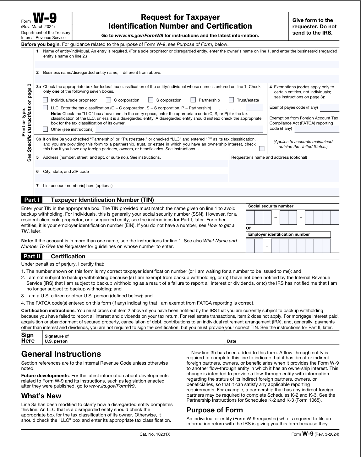 W9 Form 2025 Printable Fillable Blank Instructions Download
