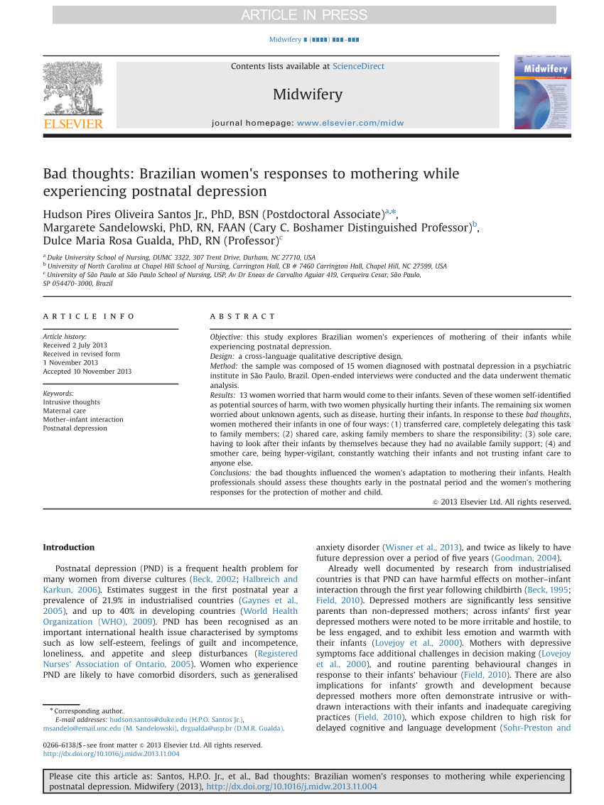 PDF Bad Thoughts Brazilian Women S Responses To Mothering While Experiencing Postnatal Depression
