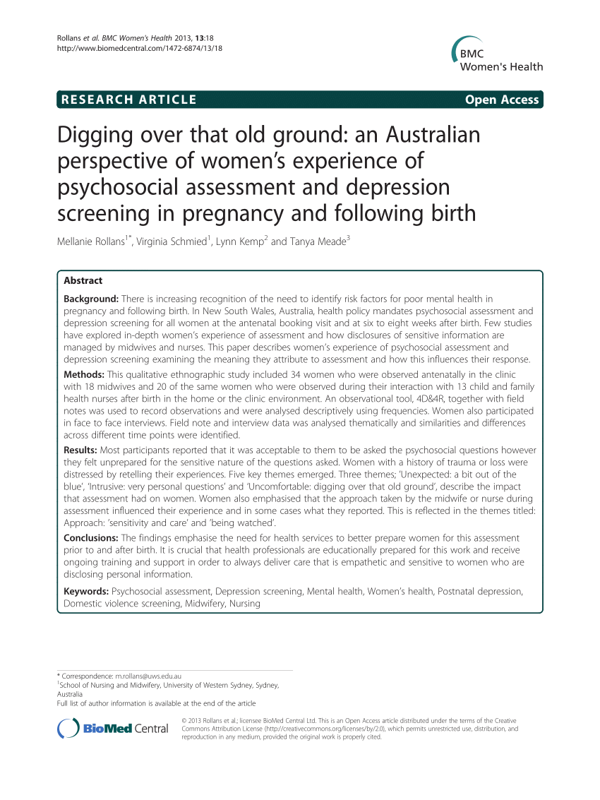 PDF Digging Over That Old Ground An Australian Perspective Of Women S Experience Of Psychosocial Assessment And Depression Screening In Pregnancy And Following Birth