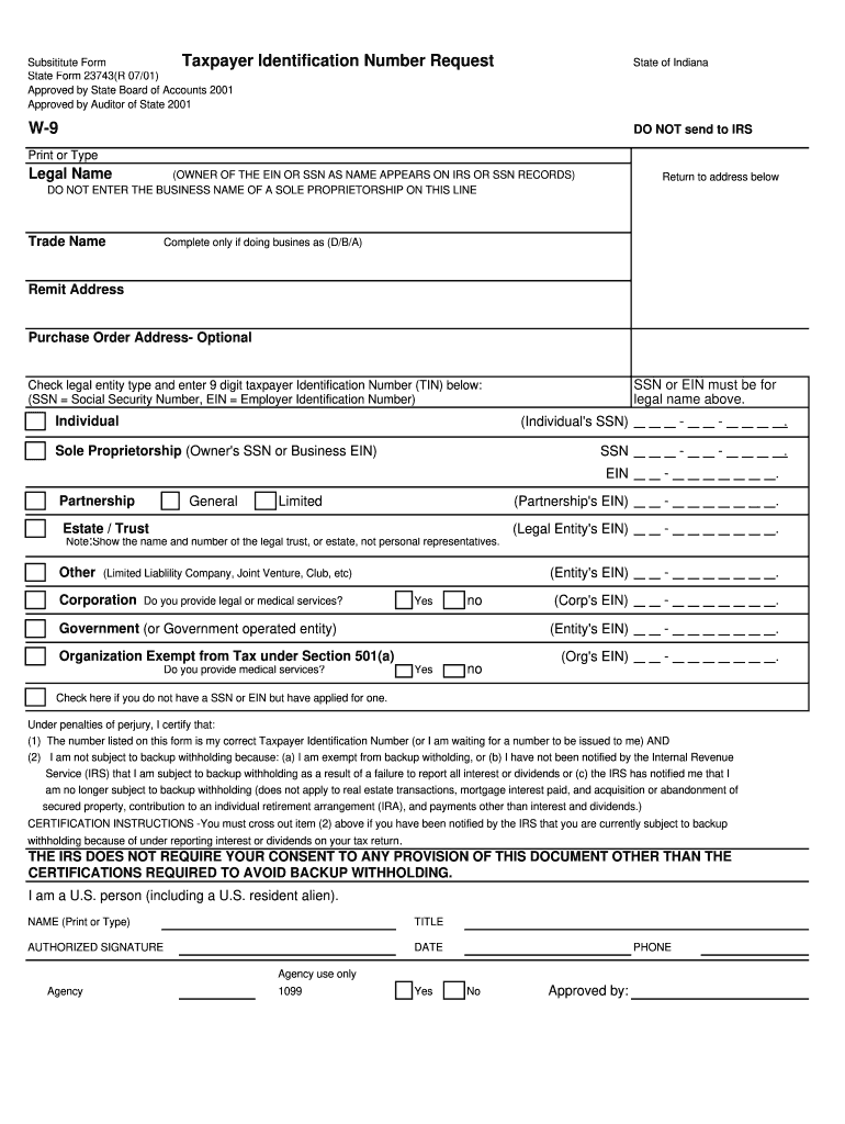 Printable W9 Form Indiana