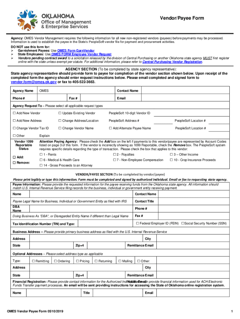 2019 2024 OK OMES Vendor Payee Form Fill Online Printable Fillable Blank PdfFiller