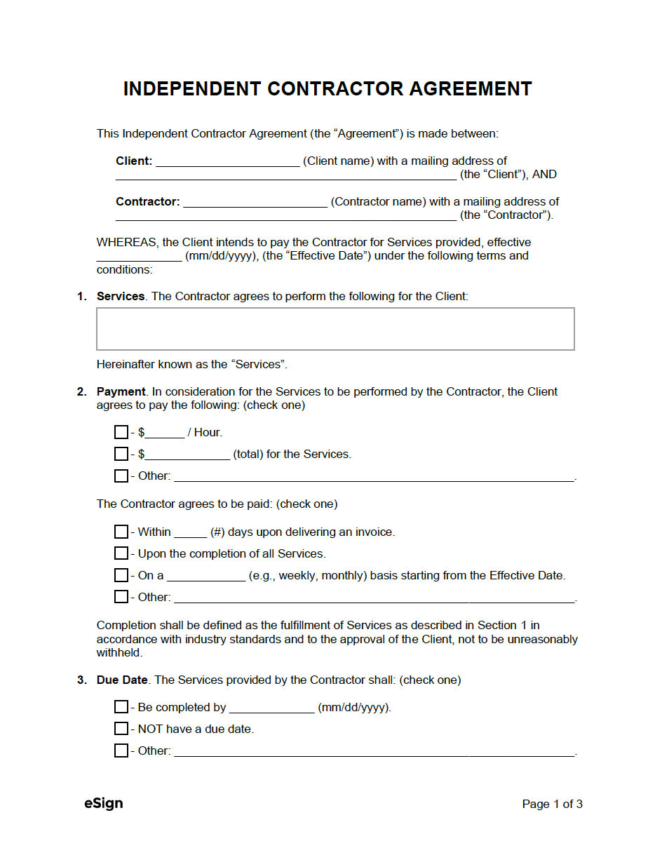Free Independent Contractor Agreement Templates 8 PDF Word