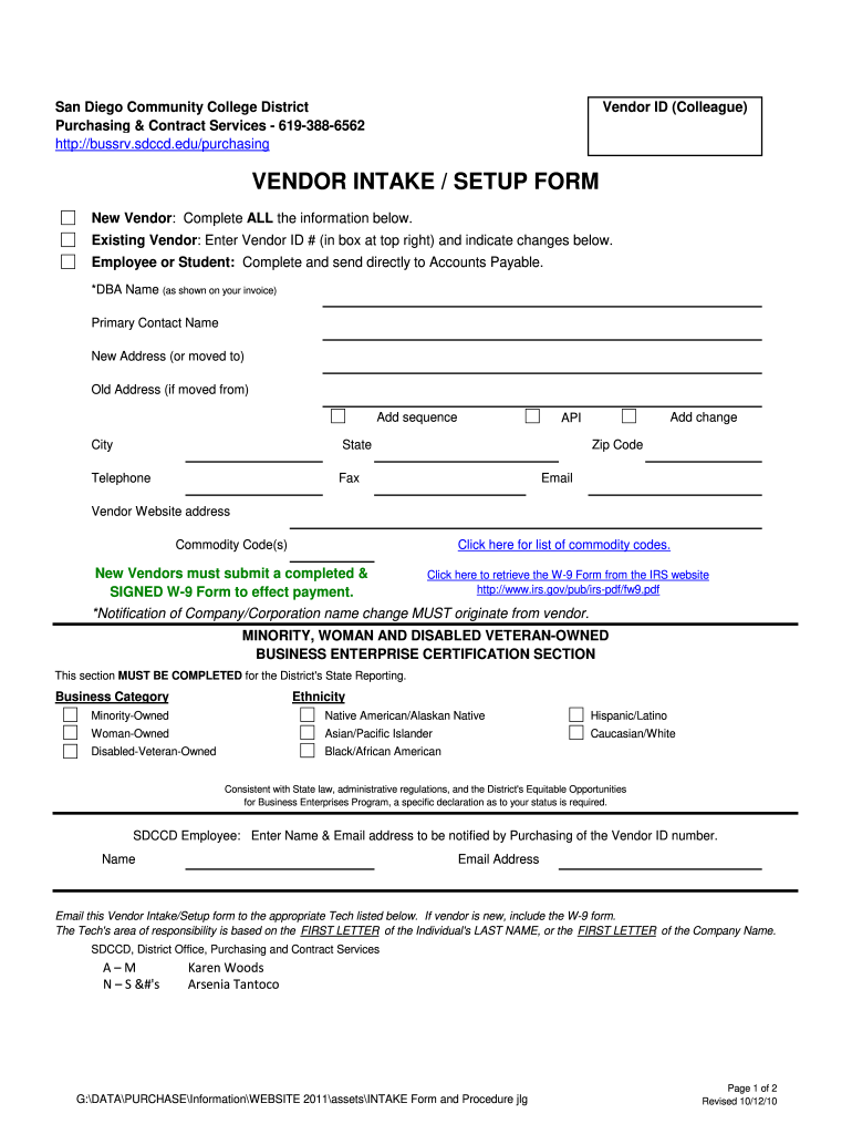 Vendor Intake Form Template Fill Online Printable Fillable Blank PdfFiller