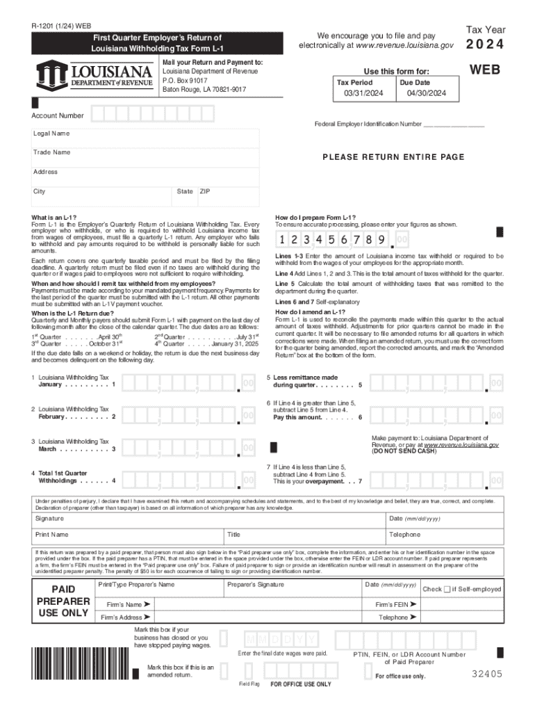 2024 Form LA LDR R 1201 Fill Online Printable Fillable Blank PdfFiller